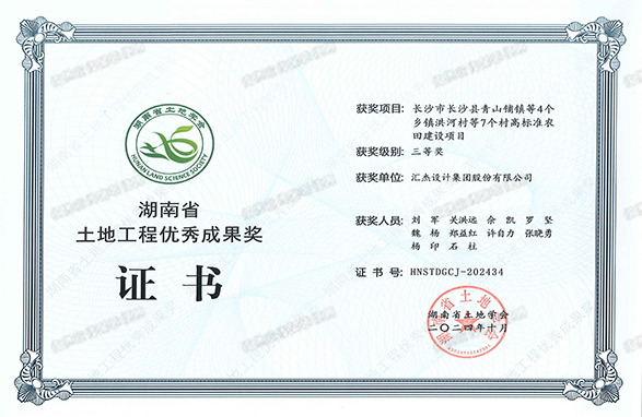 2024年,長沙市長沙縣高標準農田項目榮獲湖南省土地工程優秀成果獎
