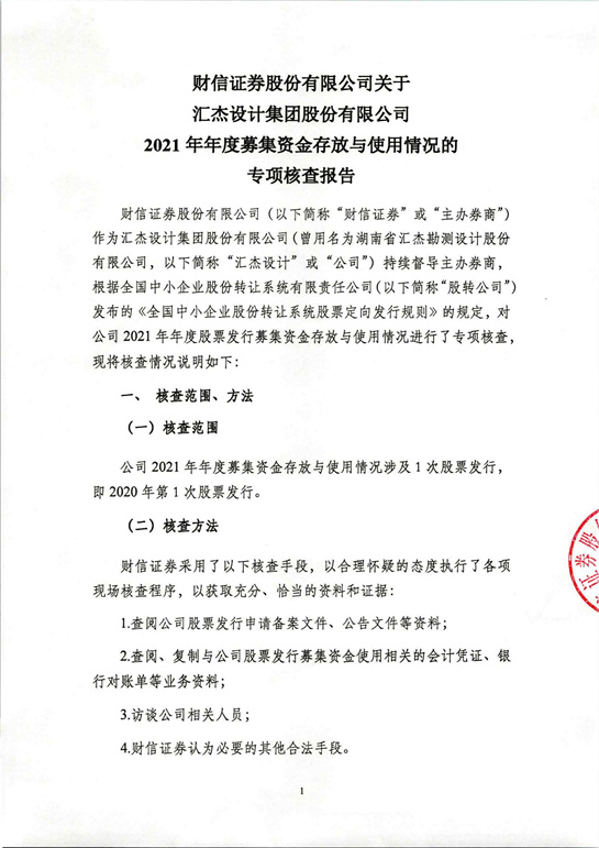 財(cái)信證券股份有限公司關(guān)于匯杰設(shè)計(jì)集團(tuán)股份有限公司2021年年度募集資金存放與使用情況的專項(xiàng)核查報(bào)告
