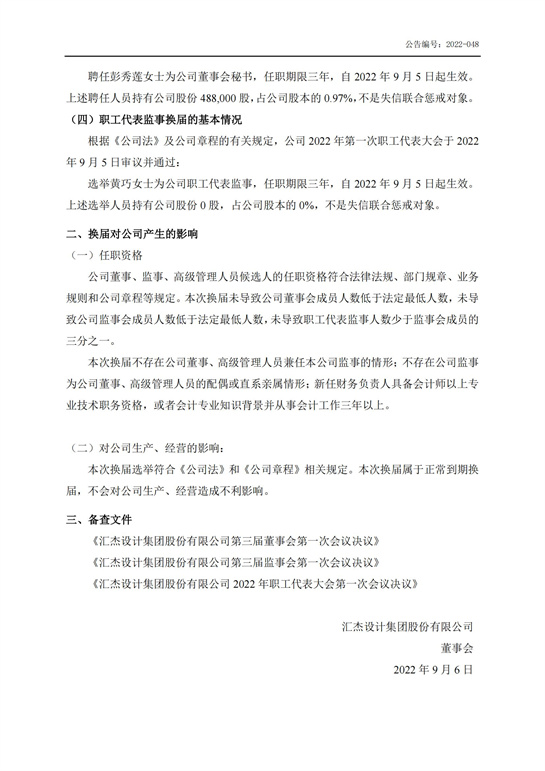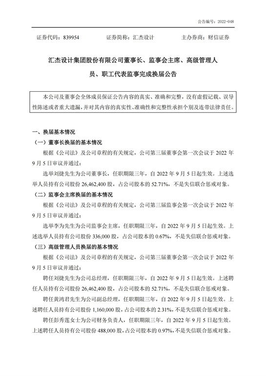 董事長、監事會主席、高級管理人員、職工代表監事完成換屆公告